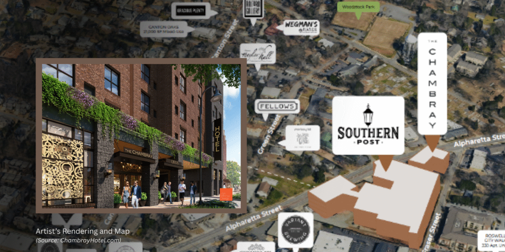 The resolution approved on Nov. 24 supports The Hotel Chambray, a five-story, 125-room Hyatt JdV Collection hotel, which will be located at 1075 Alpharetta Street, next to the Southern Post. Developed by DSM Real Estate Partners, the project includes a restaurant, rooftop bar, event space, and other guest amenities—offering a new flagship boutique hotel experience in Roswell.