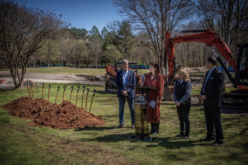 City Council, leadership, project partners, and community members gathered to celebrate the milestone project, which is funded through the voter-approved 2022 Recreation & Parks Bond and represents a major investment in Roswell’s River Parks Master Plan.