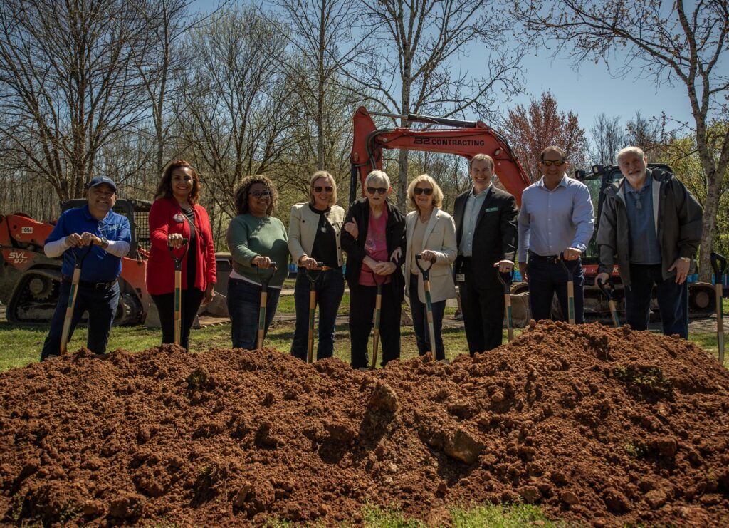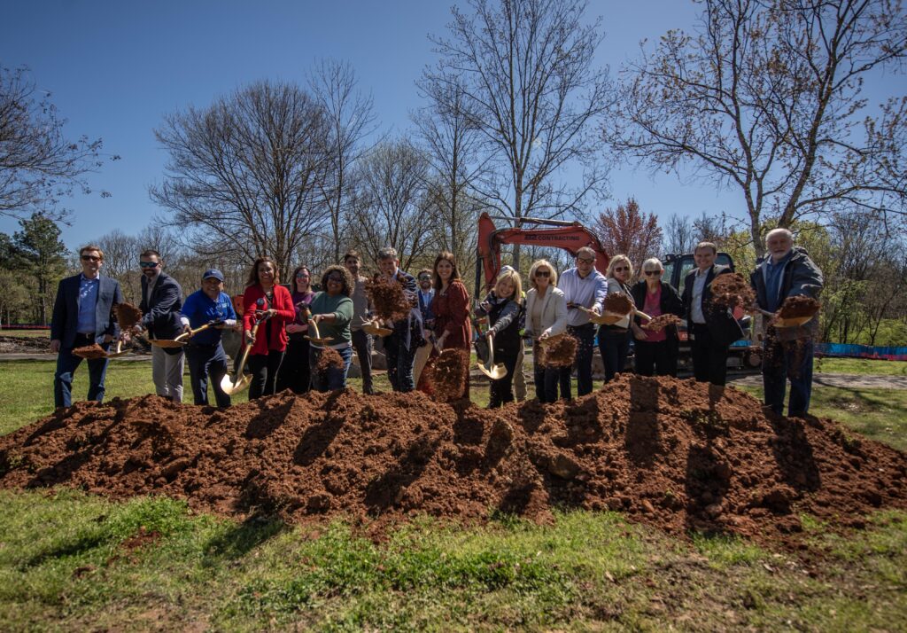 Photos from the event capture the groundbreaking moment as City Council, leadership, staff, and partners participated in the ceremonial shovel turn marking the start of construction.