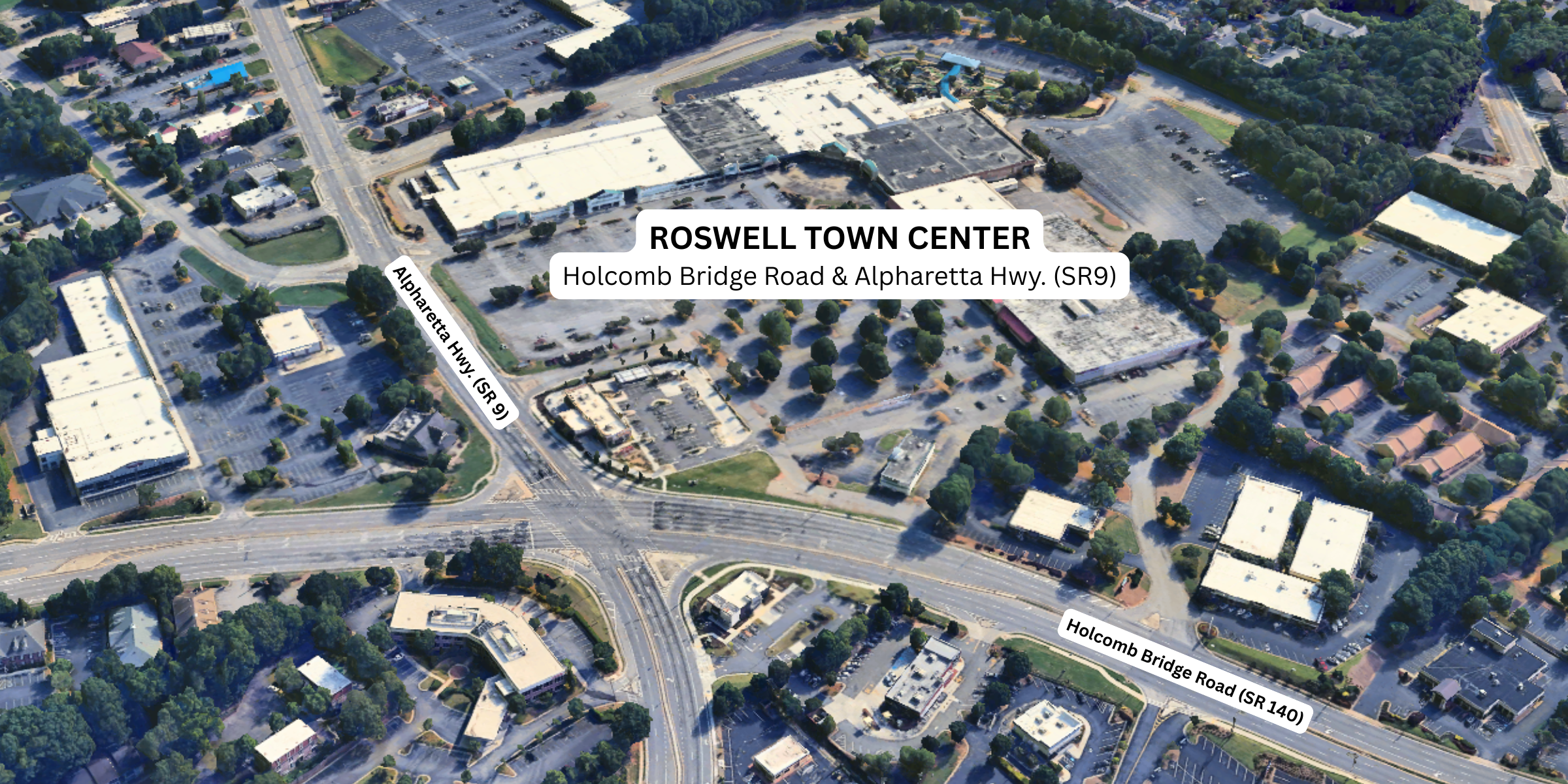 The City of Roswell has entered into a Memorandum of Understanding (MOU) with Roswell Town Center, Inc. and Morris and Fellows Ventures, Inc. to explore the redevelopment of approximately 47 acres at the northeast corner of Highway 9 and Holcomb Bridge Road. The proposed redevelopment of this aging commercial center represents one of the most significant revitalization opportunities in Roswell’s recent history.